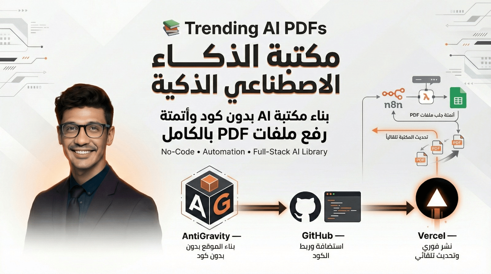 بناء موقع مكتبة AI متكامل (Full-Stack) وأتمتة رفع الـPDFs عليه: بدون كتابة سطر كود واحد 🤯 🔥