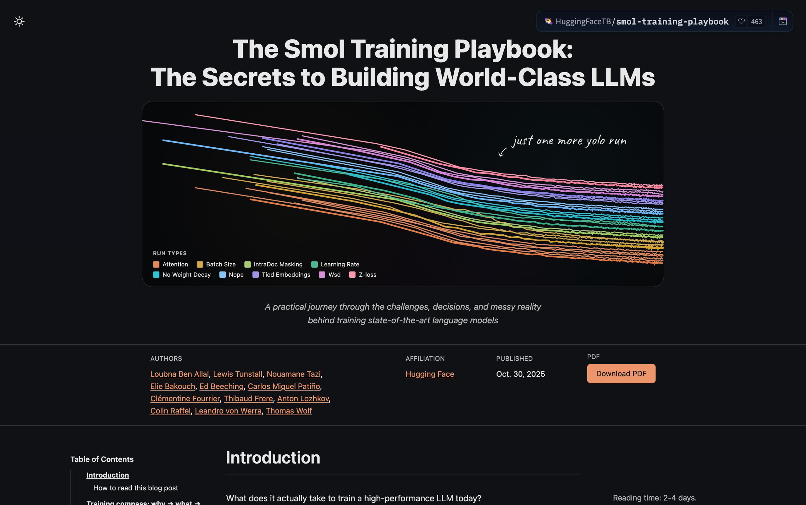 https://huggingface.co/spaces/HuggingFaceTB/smol-training-playbook#introduction