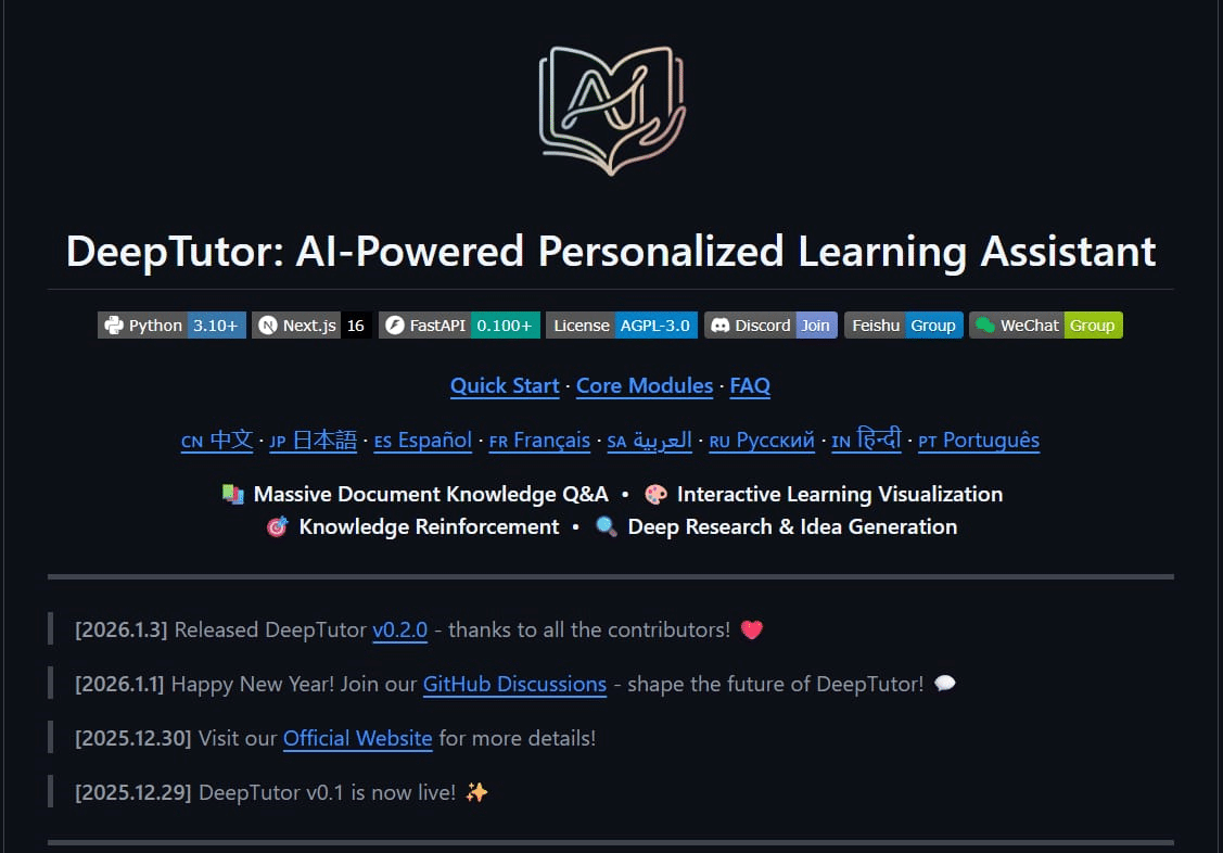 من أسبوع فقط أداة DeepTutor تتجاوز الـ 2.5k ⭐: مساعدك التعليمي الذكي لعام 2026 🚀🔥