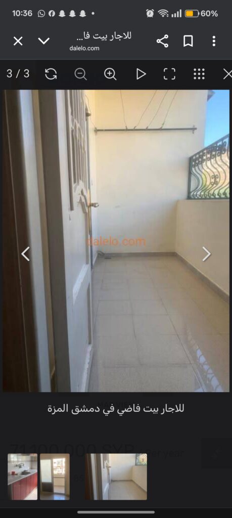 للاجار بيت فاضي في دمشق المزة